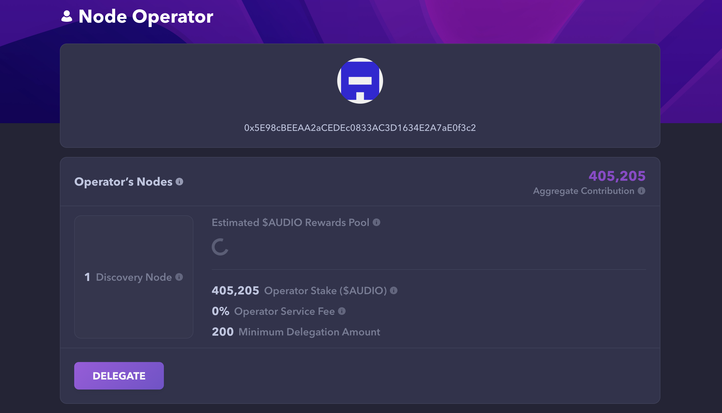 Delegation is a great place to get involved for users that either do not hold enough $AUDIO to self stake a Node, do not want to become a Node Operator, or are just looking to get started.