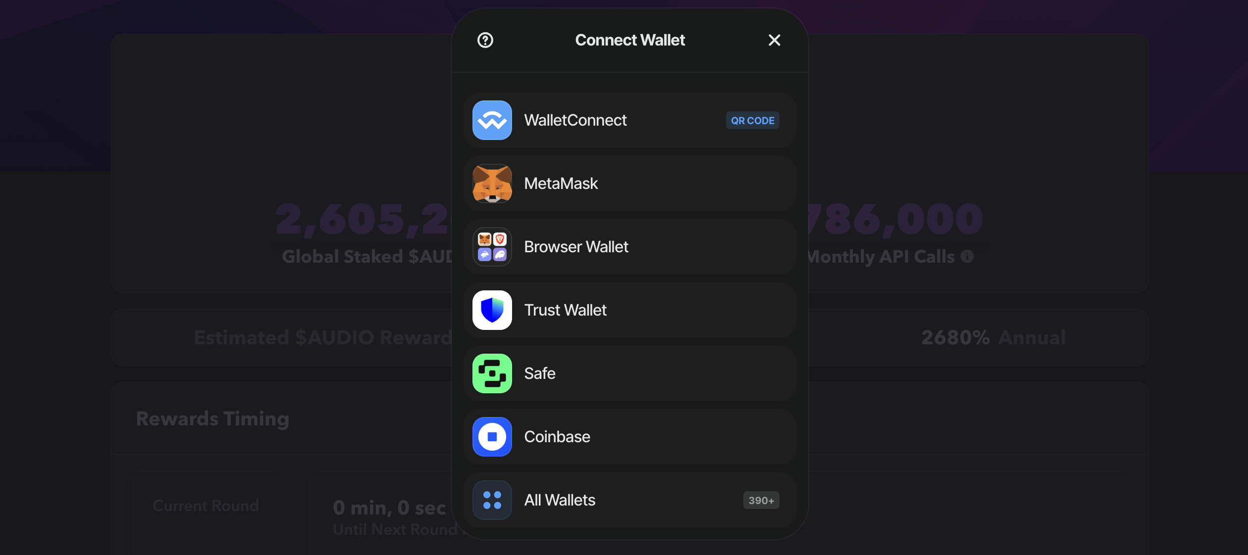 $AUDIO holders can delegate a minimum of 100 tokens to any Node Operator by connecting their wallet on the Audius Protocol Dashboard using Wallet Connect.